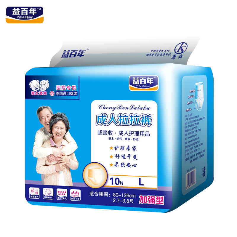 益百年拉拉褲可以快速吸收,防漏效果很好,最重要的是可以減少異味帶來(lái)的尷尬,一些成年人在外出的時(shí)候使用時(shí)非常合適的。成年人尿液多益百年拉拉褲吸收量大,吸收快非常適合使用,穿脫也方便。